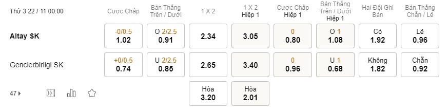 Mặc cho việc đang có phong độ khá vượt trội thì Altay cũng thường không được biết tới với lối đá quá phóng khoáng. Thêm vào đó, cả 3 lần gần nhất đội bóng này đối đầu với Genclerbirligi, NHM chỉ được chứng kiến nhiều nhất 2 bàn thắng xuất hiện mỗi 90 phút. Đó là lý do một số trang truc tiep bong da hd nhận định tỉ lệ nổ Xỉu sẽ là khá cao trong trận đấu này.