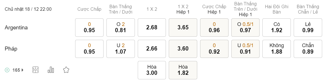 Soi kèo tài xỉu Argentina vs Pháp: 0.81*2*1.07