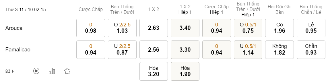 Soi kèo hiệp 1 Arouca vs Famalicao: 0.75*0.5/1*1.14