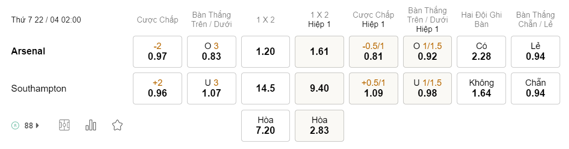 Soi kèo châu Á Arsenal vs Southampton: 0.97*2*0.96