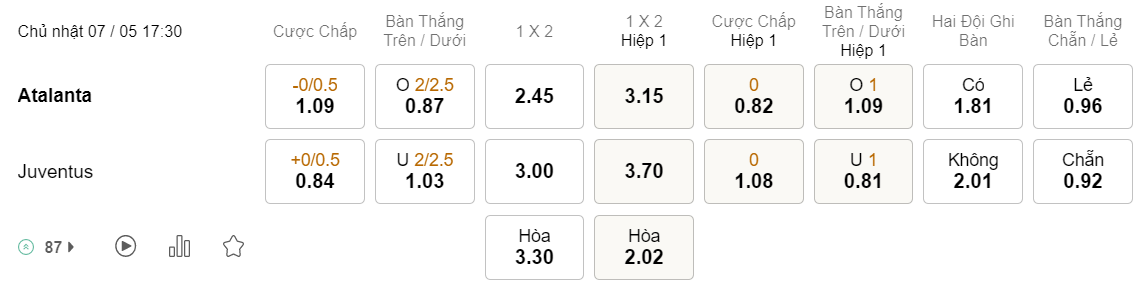 Soi kèo tài xỉu Atalanta vs Juventus: 0.87*2/2.5*1.03