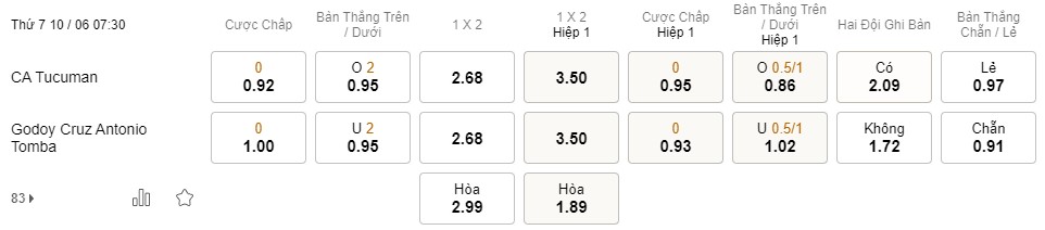 Tỉ lệ kèo Atletico Tucuman vs Godoy Cruz
