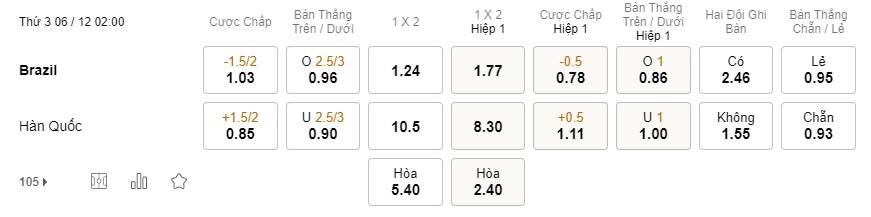 Tỉ lệ kèo Brazil vs Hàn Quốc