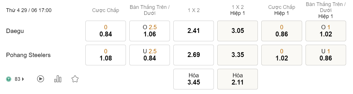 Tỉ lệ kèo Daegu vs Pohang Steelers