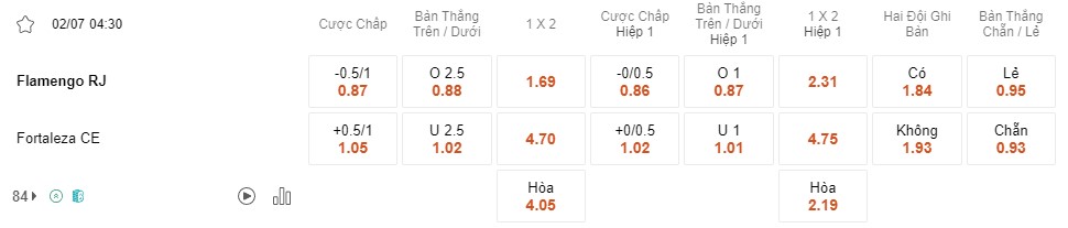 Tỉ lệ kèo Flamengo vs Fortaleza