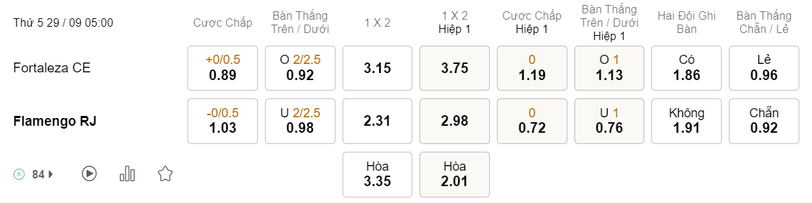 Soi kèo hiệp 1 Fortaleza vs Flamengo: 1.19*0*0.72