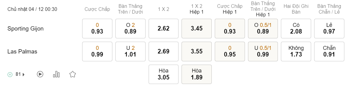 Soi kèo hiệp 1 Gijon vs Las Palmas: 0.93*0*0.95