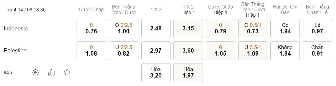 Tỉ lệ kèo Indonesia vs Palestine