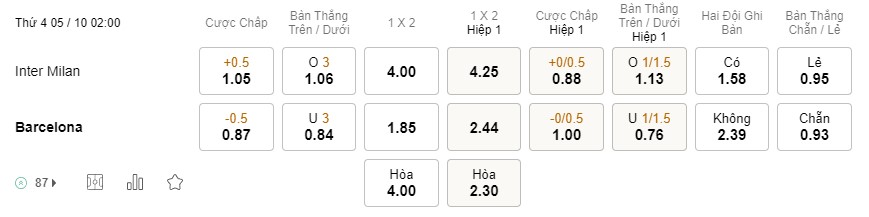 Soi kèo châu Á Inter vs Barcelona: 1.05*0.5*0.87