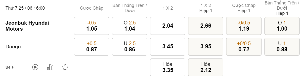 Tỉ lệ kèo Jeonbuk vs Daegu