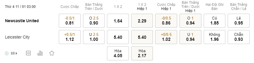 Soi kèo châu Á Newcastle vs Leicester: 0.81*0.5/1*1.12
