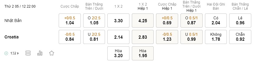 Tỉ lệ kèo Nhật Bản vs Croatia