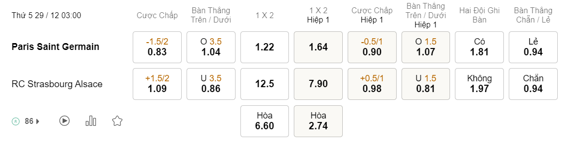 Soi kèo châu Á PSG vs Strasbourg: 0.83*1.5/2*1.09