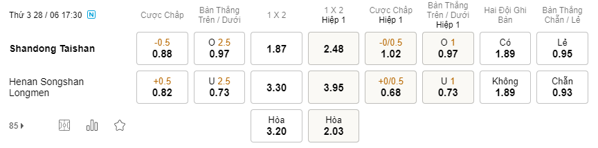 Soi kèo châu Á Shandong Taishan vs Henan: 0.88*0.5*0.82