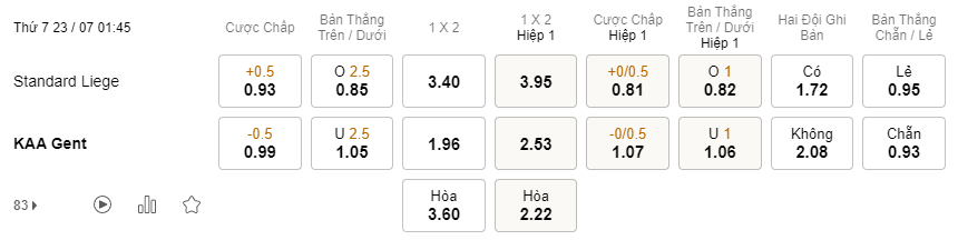 Soi kèo hiệp 1 Standard Liege vs Gent: 0.81*0/0.5*1.07