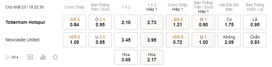 Soi kèo hiệp 1 Tottenham vs Newcastle: 1.21*0/0.5*0.72
