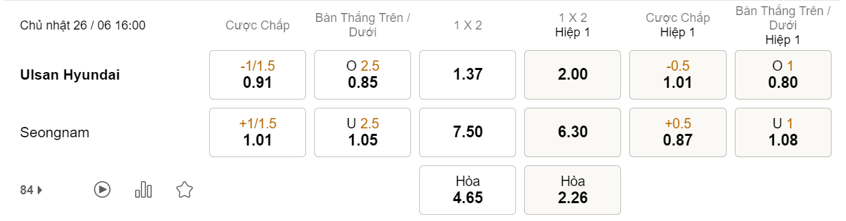 Soi kèo châu Á Ulsan Hyundai vs Seongnam: 0.91*1/1.5*1.01