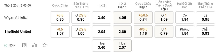 Soi kèo hiệp 1 Wigan vs Sheffield United: 0.74*0/0.5*1.16